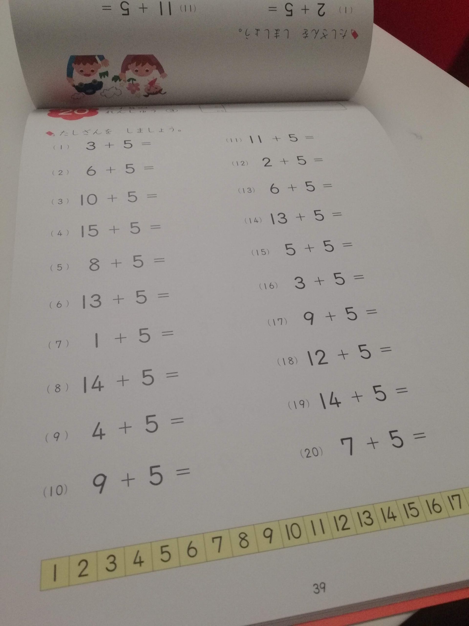 ひらがなもマスターし、祖父母や従姉妹たちにお手紙を書けるようになり、ひらがなを書くことに飽きてきたので、算数の勉強に移行しました。