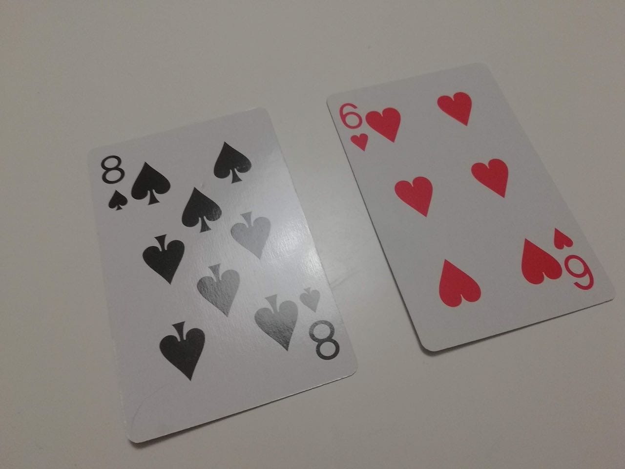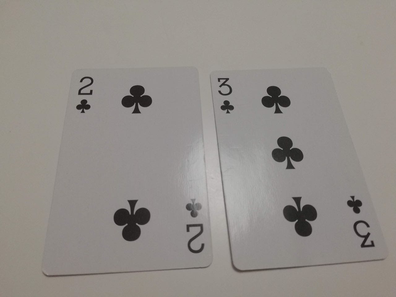 最初はトランプの1〜3のカード各4枚(合計12枚)をシャッフルし、2枚を出して足した数字を言うゲーム。
