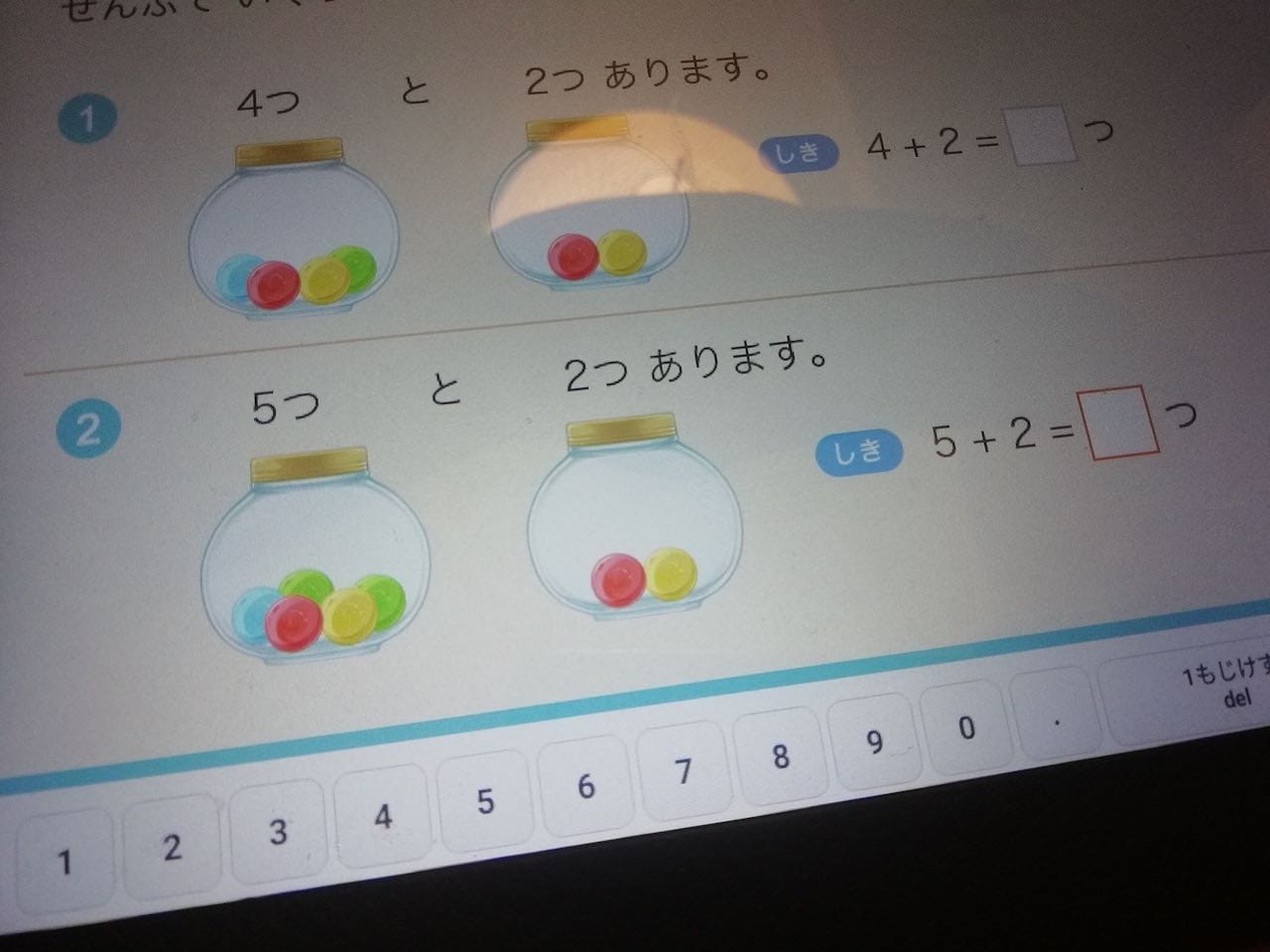 「たしざんおけいこ1集」をさせていた時は、完全に思考停止でやってたので、考えて問題を解くという行為に感動してました。