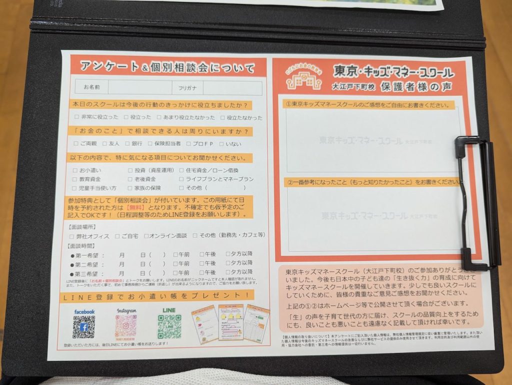 今回、キッズマネースクールに参加してみて、子どもが楽しみながらお金の基本を学べる点、親としてもお小遣いやお金の考え方に関するアドバイスが受けられる点がとても有意義に感じました。