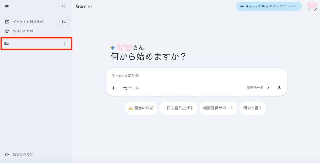 Gem(ジェム)は、自分専用にカスタマイズしたGeminiを作れる機能です。