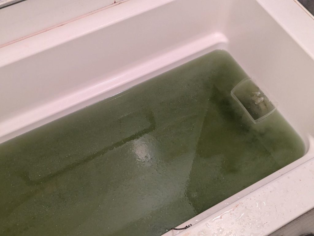 • アフター: 茶色い湯ドロや石鹸カスのような浮遊物が大量に…