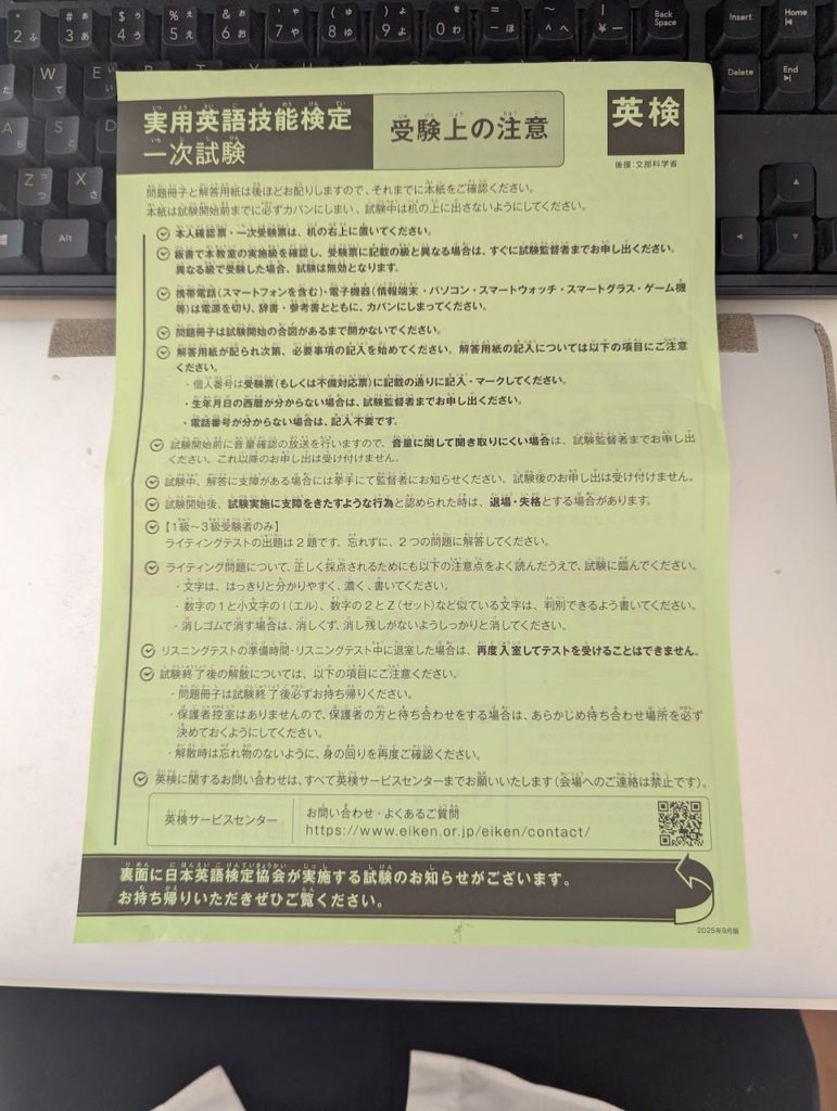 余談ですが英検試験日の電車内は試験対策をしてる学生が多かったです。