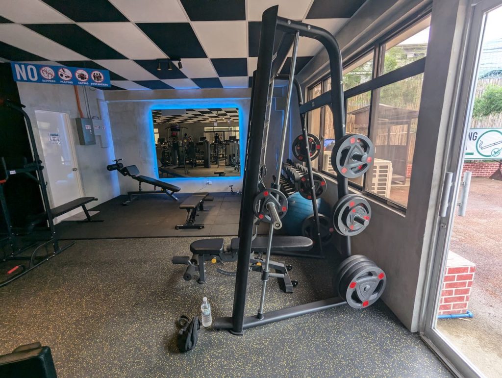 その他、スミスマシンが2台、ダンベルがおいてるフリーウエイトエリアがあります。
