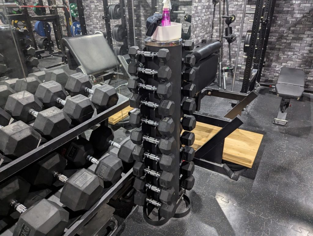 一般ジム利用者からすると衝撃的な台数。待ち時間少なくBIG3のトレーニングに集中できる。